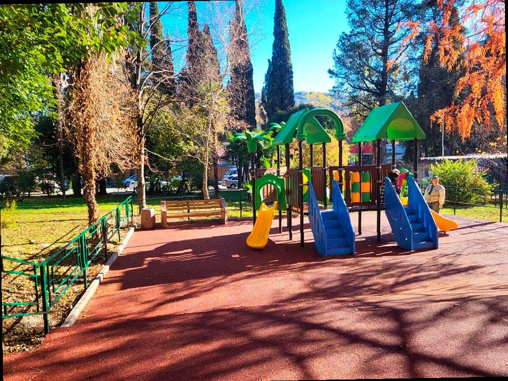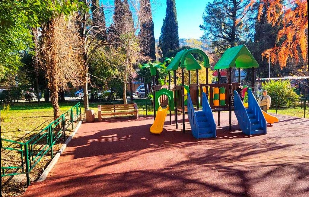 В районе дома №7 по улице Октября в Хостинском районе установили детскую площадку. Теперь здесь около 500 квадратных метров безопасного покрытия, 7 игровых и спортивных комплексов, а также зеленая зона.