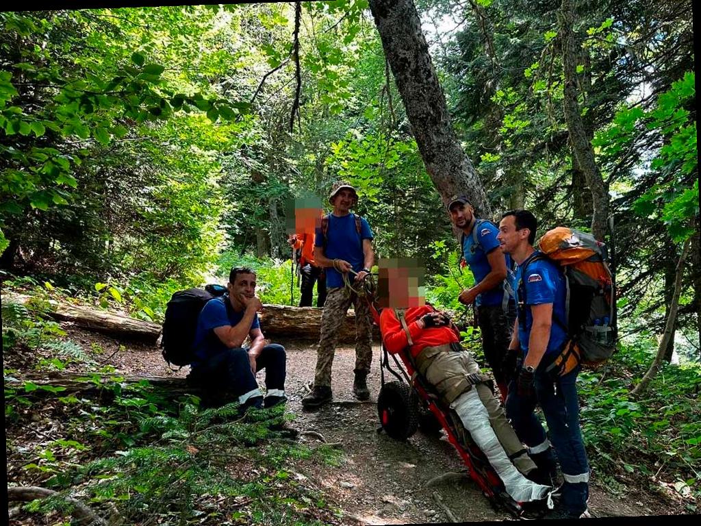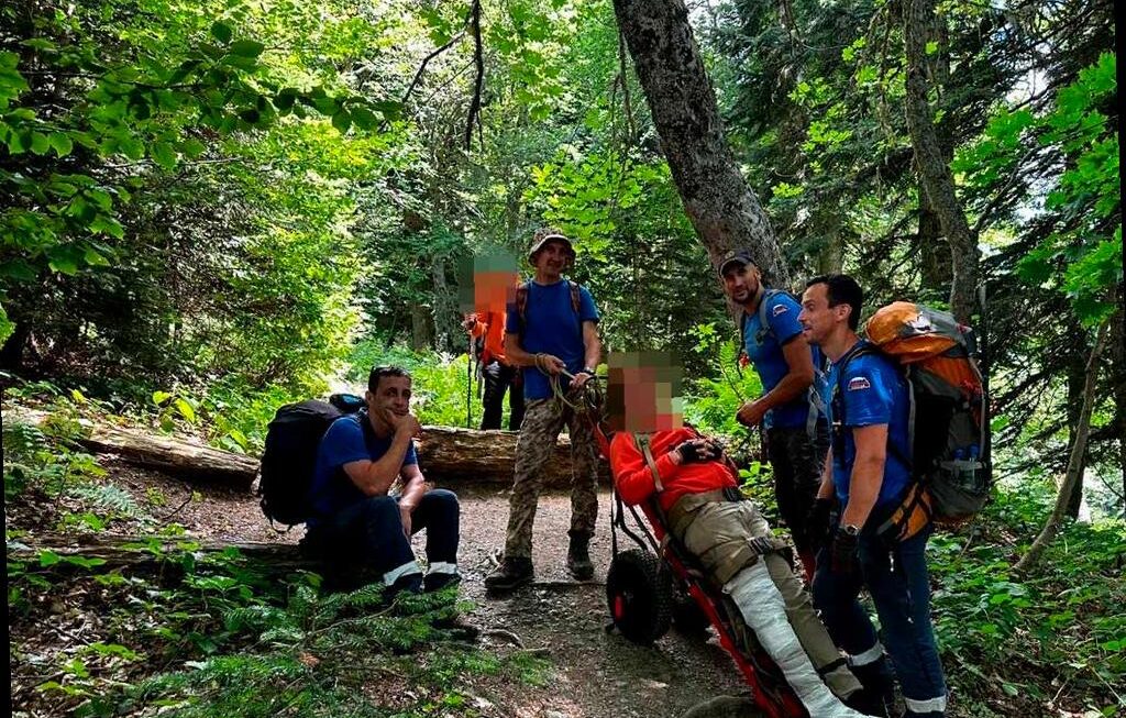 Недавно два молодых человека возвращались с похода по Бзерпинскому карнизу, когда один из них получил травму ноги. Нога начала опухать, и появилась сильная боль, из-за которой турист не мог продолжить путь. Потребовалась помощь спасателей.