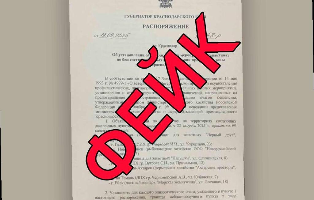 Карантин по бешенству животных в Краснодарском крае — фейк!