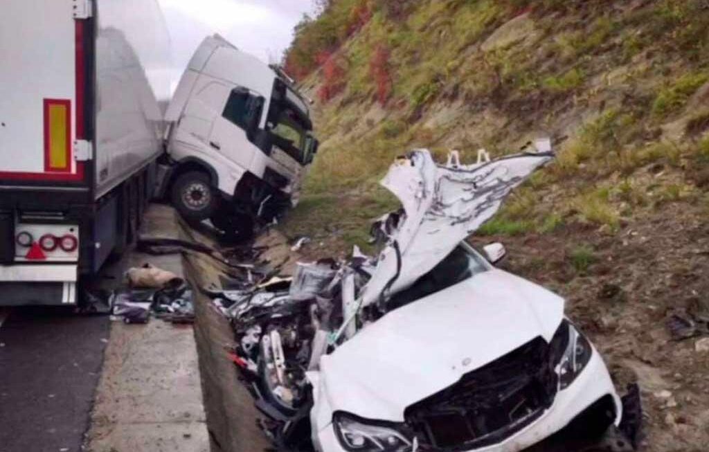 Легковой автомобиль был разбит вдребезги в результате удара. В результате аварии погибли водитель, пассажирка и двое детей в возрасте 2 и 4 лет.