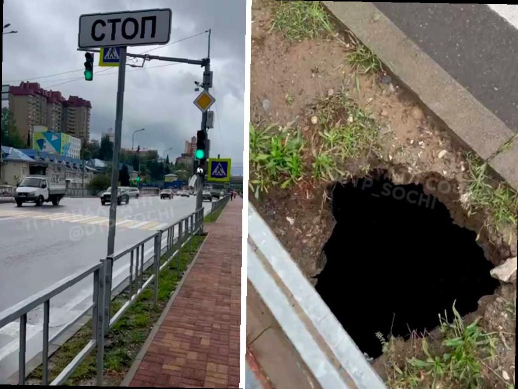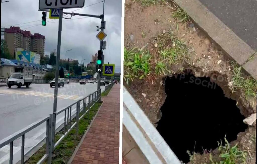 В Центральном районе Сочи, на улице Пластунской возле СГУ, был замечен провал грунта. Об этом сообщил телеграм-канал «ДТП Сочи», опубликовав видеозапись с места происшествия.