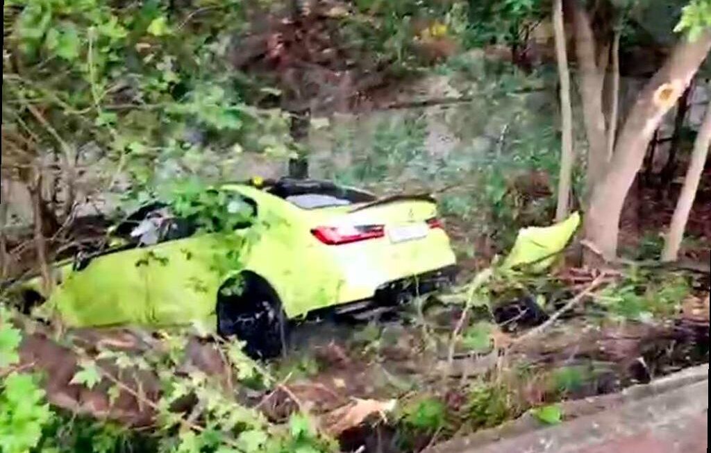 Рано утром в Хостинском районе Сочи произошла авария. Прохожие засняли салатовый автомобиль марки «БМВ», застрявший в деревьях недалеко от дома №6 по улице Черноморской.