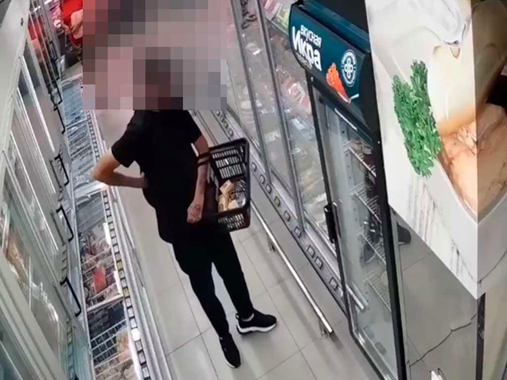 Полиция задержала мужчину, который украл красную икру, сыр и другие деликатесы из магазина в Адлере. Злоумышленник брал продукты, скрывал их в карманах и уходил. Преступление было раскрыто во время инвентаризации, а задержали его благодаря камерам видеонаблюдения. На момент задержания все украденное уже было съедено. Сейчас мужчине грозит до двух лет тюрьмы за кражу. Фото: УВД по городу Сочи.