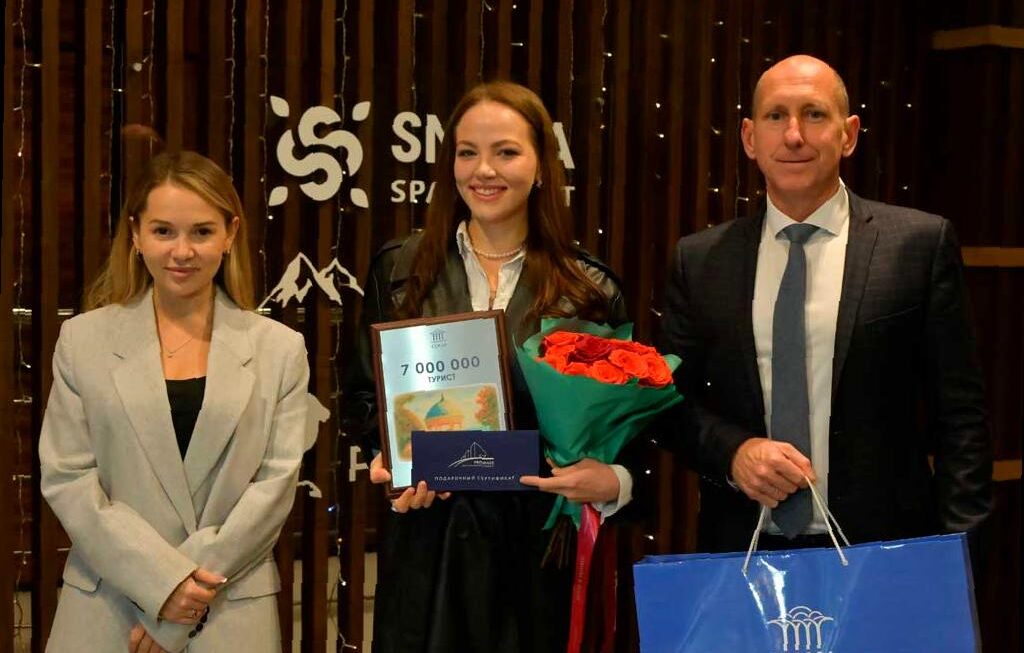 В честь этого события гостье вручили сертификат семимиллионного туриста и памятные подарки.