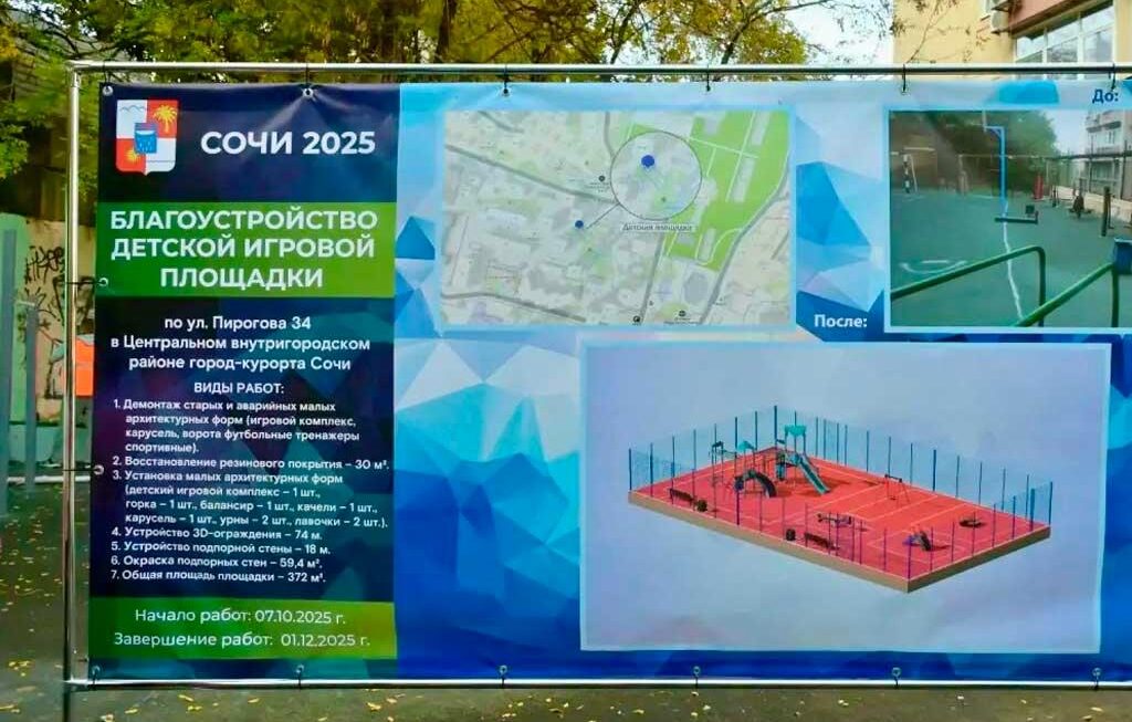 Глава Сочи Андрей Прошунин посетил детскую площадку на улице Пирогова в рамках рабочего объезда Центрального района. В настоящее время здесь проводятся ремонтные работы. Специалисты уже демонтировали старые элементы и установили ограждение. Также было завершено благоустройство игровой зоны и прилегающей территории.