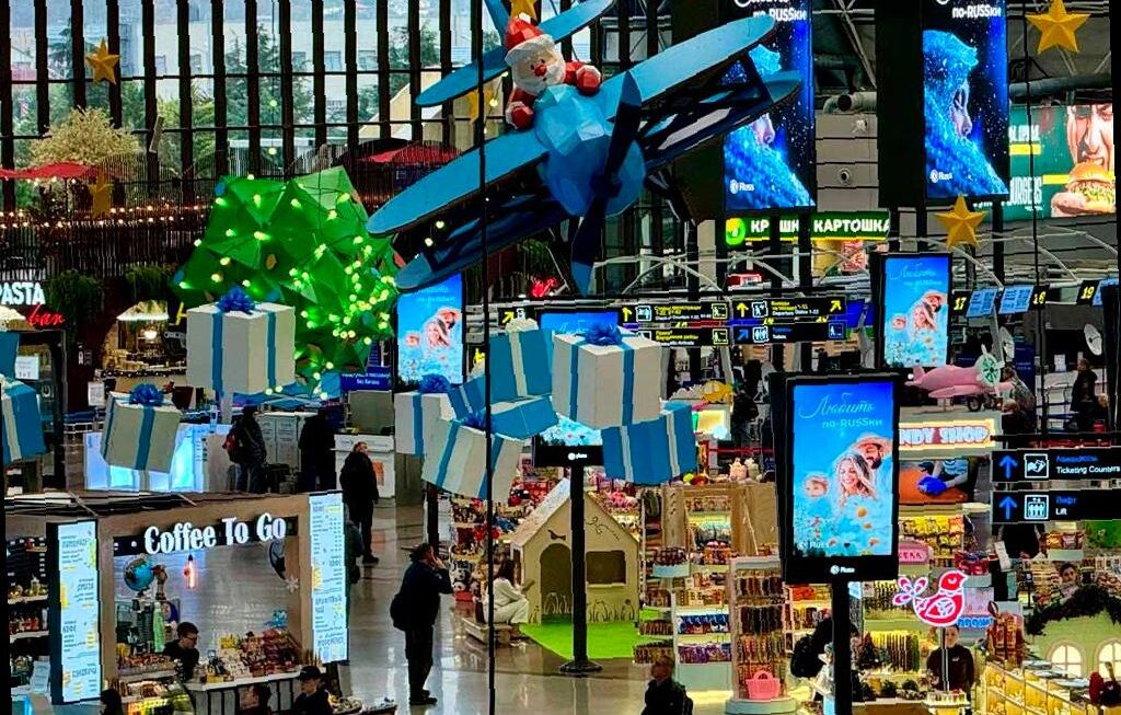 В Международном аэропорту Сочи появилась праздничная инсталляция. Ее построили на пути в зону предполетного досмотра в секторе B2 терминала.