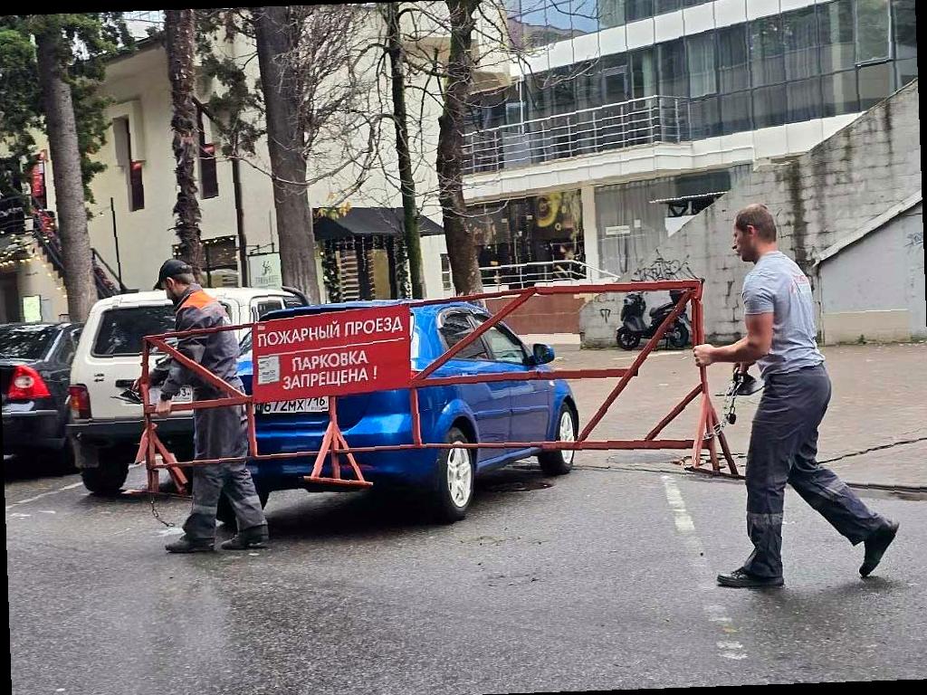 В Сочи убирают незаконные парковочные заграждения