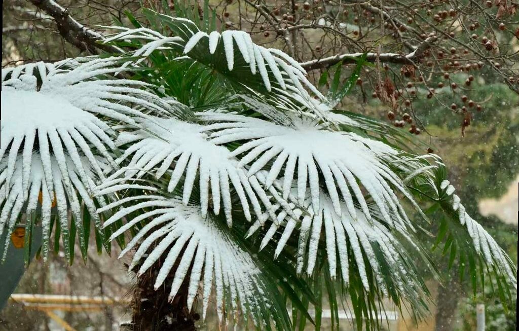 По прогнозам синоптиков, сегодня ночью и в первой половине 4 марта, налипание мокрого снега ожидается на провода и деревья в предгорьях Сочи. Возможна гололедица на дорогах.
